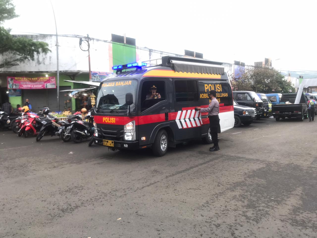 Dalam Imbauannya Kasat Binmas menyampaikan Kepada masyarakat yang beraktifitas di Pasar Karang Taruna Kota Banjar dihimbau tetap harus disiplin mentaati protokol kesehatan pada masa adaptasi kebiasaan baru.