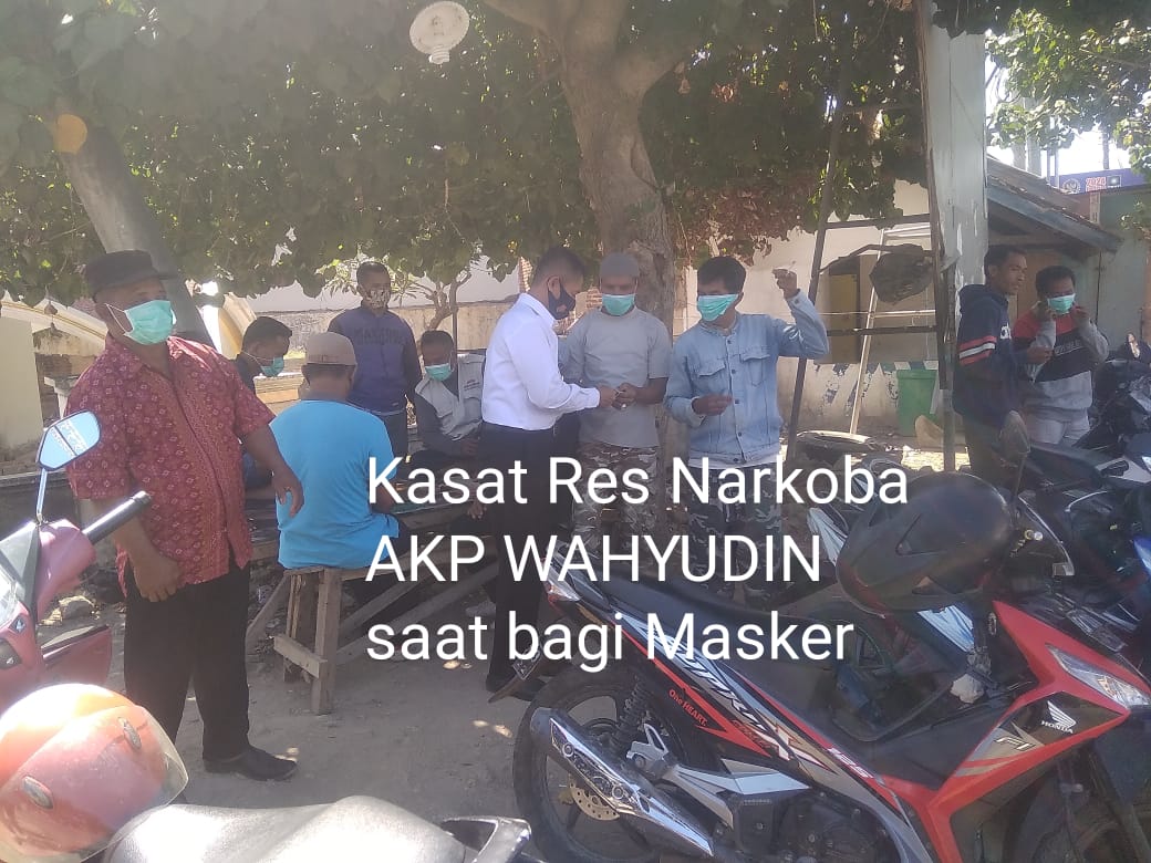 Kasat Res Narkoba Polres Bima Berikan Masker Gratis Pada Pangkalan Ojek Yang Tidak Pakai Masker