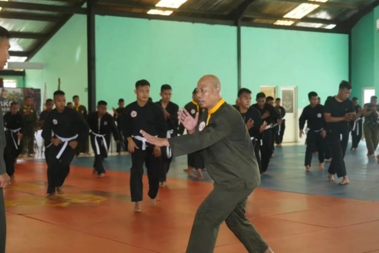 Cilodong – Semangat juang dan keteladanan ditunjukkan oleh Kepala Staf Divisi Infanteri 1 Kostrad, Brigjen TNI Vivin Alivianto, saat turut serta dalam latihan Pencak Silat Militer bersama para prajurit di GOR Prakasa, Cilodong, Depok, Selasa (1/7/2025).