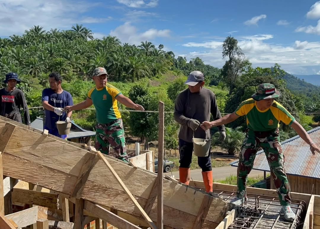 Kebersamaan Satgas Pamtas Yonarmed 11 Kostrad dan Warga dalam Pembangunan Mushola di Perbatasan