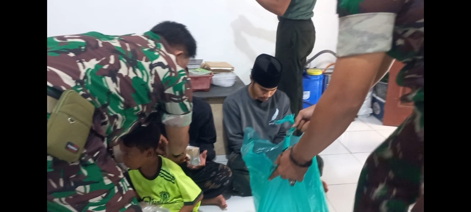 Danramil 05/Balaraja, Kapten Inf Ali Maskuri SE memberikan langsung nasi bok dan Kitab untuk para santri Ponpes Sirojul Qur’an dan Masyarakat tidak mampu sekitar Ponpes Sirojul Qur’an Jum’at (09/06/2023).