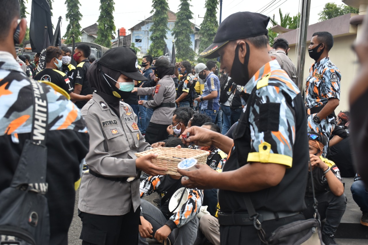 Berita MaPolres Banjar Polda Jabar – Aksi demonstrasi menolak Undang Undang Cipta Kerja di halaman Gedung DPRD Kota Banjar, namun ada pemandangan berbeda pada pelaksanaan Pengamanan unjuk rasa tersebut, pada Selasa (13 Oktober 2020).