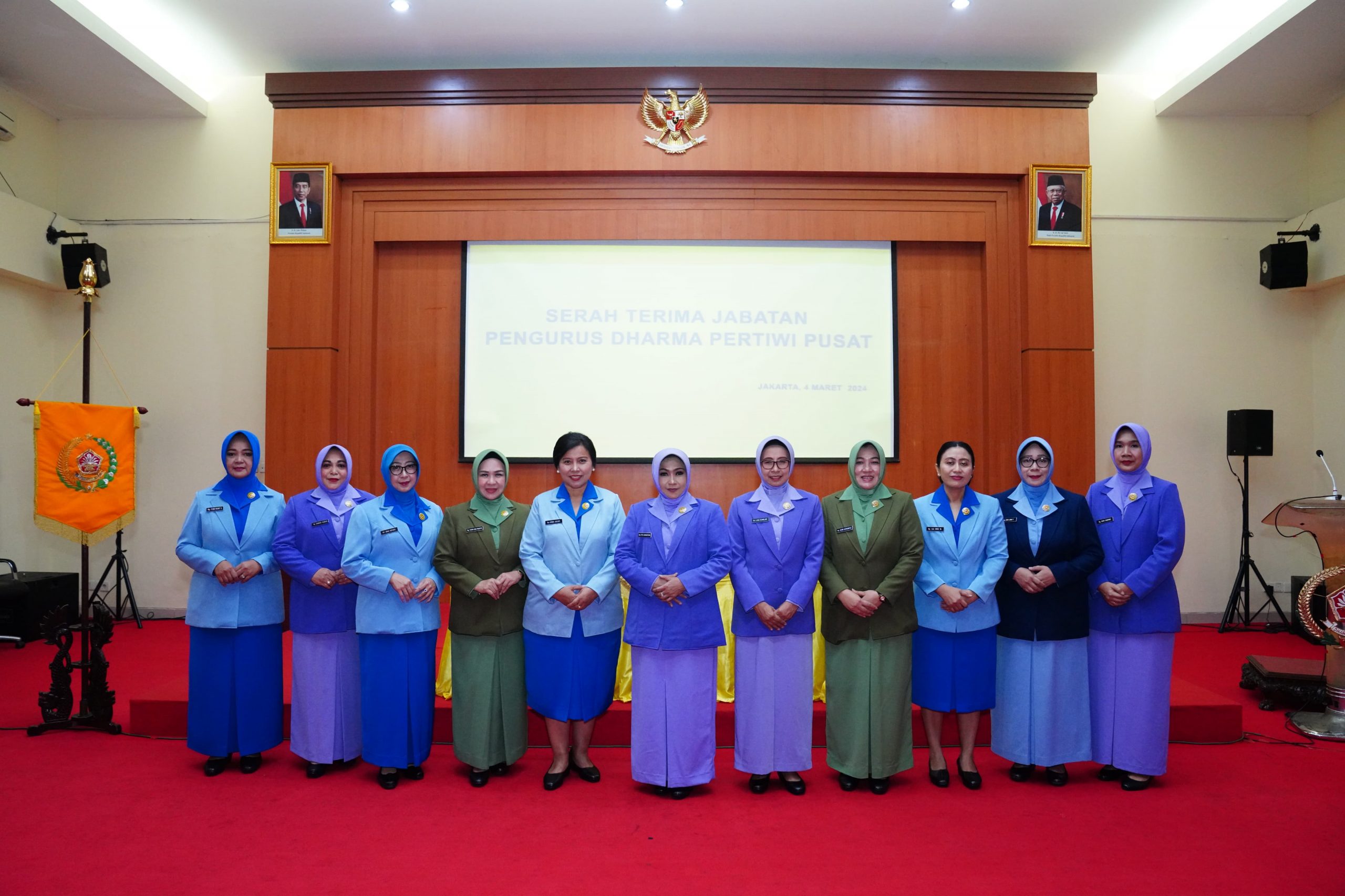 (Puspen TNI). Ketua Harian Dharma Pertiwi (DP) Pusat Ny. Etta Suhartono memimpin sertijab Ketua Seksi (Kasi) Penerangan dan Redaksi, bertempat di Aula Cut Nyak Dien Mabes TNI Cilangkap, Jakarta Timur, Senin (4/3/2024).