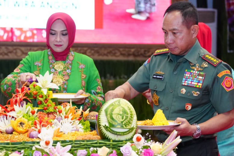 (Puspen TNI). Ikatan Kesejahteraan Keluarga TNI (IKKT) Pragati Wira Anggini (PWA) menggelar acara syukuran Hari Ulang Tahun (HUT) IKKT Ke-58 yang mengangkat tema “Dengan Kemandirian & Ketangguhan, IKKT Pragati Wira Anggini Mendukung Prajurit TNI Melalui Hemat Pangan Guna Mewujudkan TNI Yang Prima Menuju Indonesia Maju”, bertempat di Aula Gatot Subroto Mabes TNI, Cilangkap, Jakarta Timur, Kamis (18/7/2024).