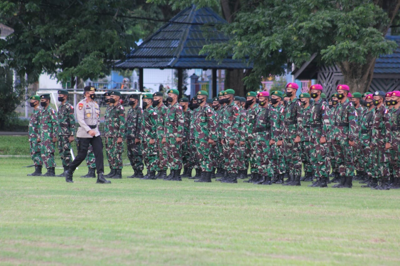 Berita Sentani— Prajurit Kodam XVII/Cenderawasih mengikuti apel gelar pasukan pengamanan PON XX 2021 yang dilaksanakan di Lapangan Sepak Bola Rully Nere Lanud Silas Papare, Distrik Sentani, Kabupaten Jayapura, Minggu (19/9/2021).