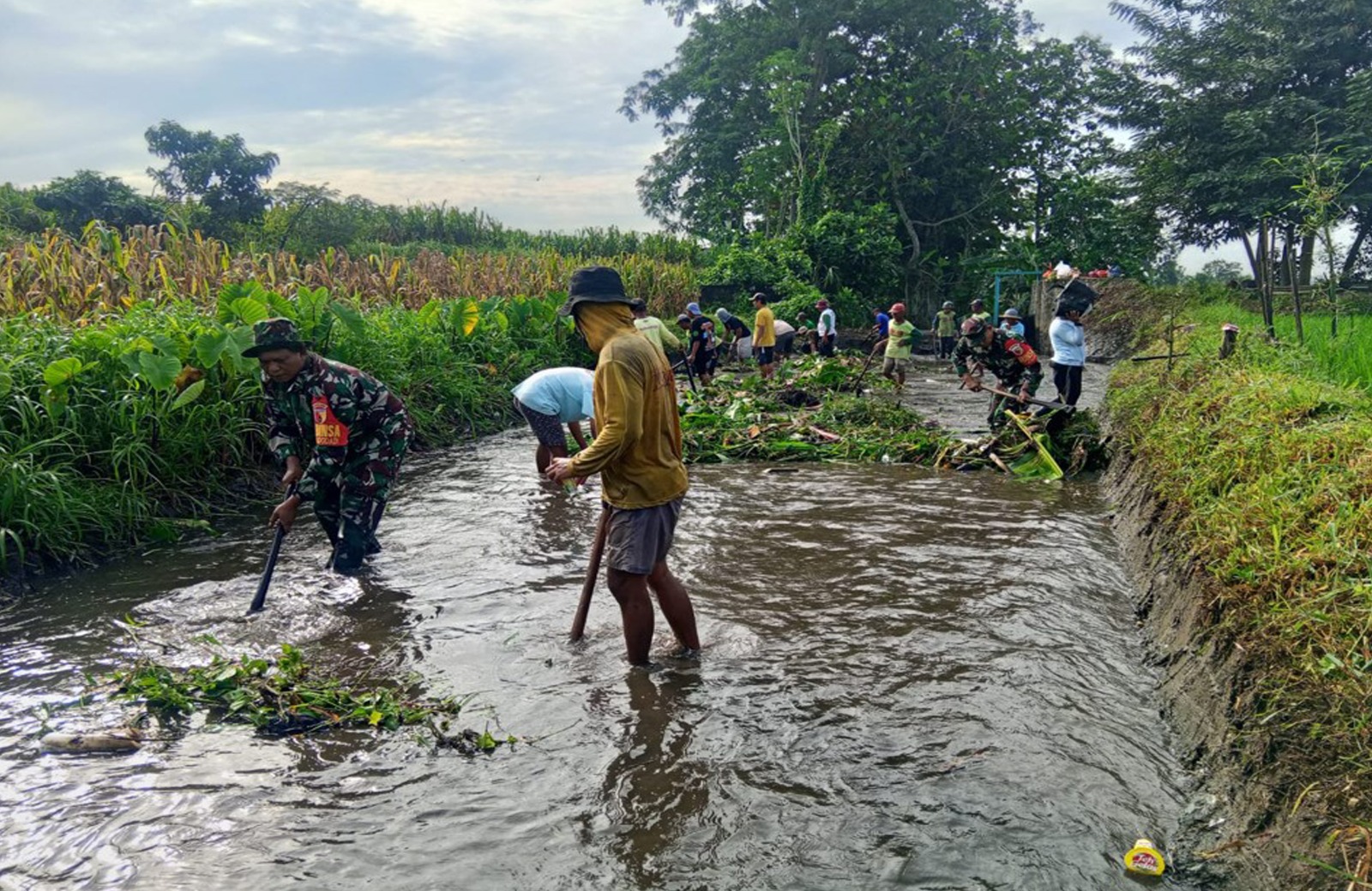 Blitar – Koramil 0808/02 Garum bersama masyarakat melaksanakan kerja bakti pembersihan dan normalisasi sungai serta Dam Popokan sepanjang ±100 meter di Dusun Manukan, Desa Pojok, Kecamatan Garum, Kabupaten Blitar. Kegiatan ini juga disertai dengan syukuran dan tradisi kirim “Dawuhan” sebagai ungkapan rasa syukur atas ketersediaan air yang melimpah untuk kebutuhan pertanian warga, Jumat (13/12/2024).