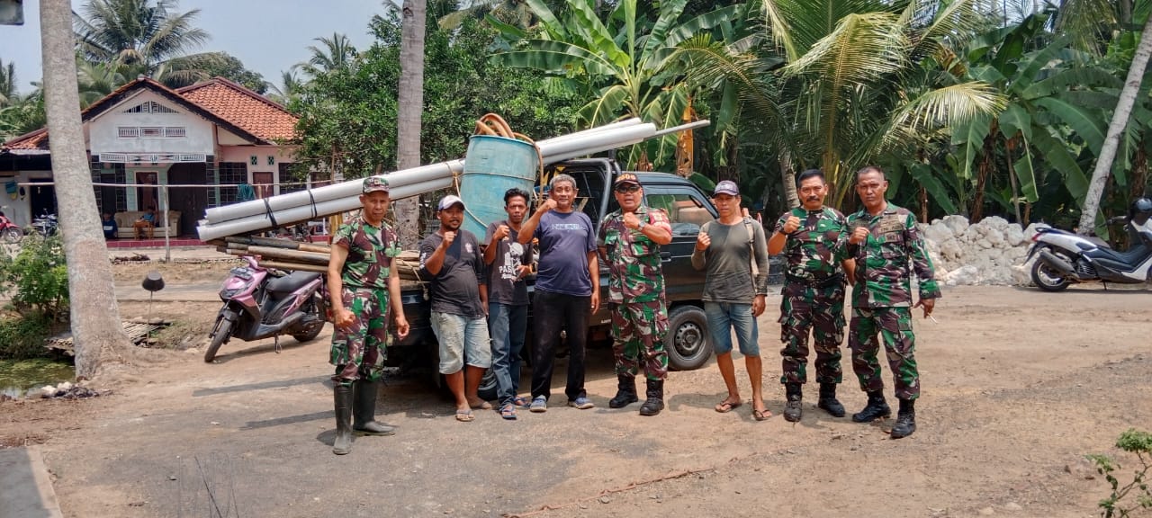Pangadaran–Koramil 2506/Padaherang Kodim 0625/ Pangandaran, melaksanakan kegiatan Pembuatan Sumur Bor dan Bak Air . MCK (Mandi Cuci Kakus) Bantuan TNI – AD Skala Besar dalam rangka HUT TNI AD ke 79.