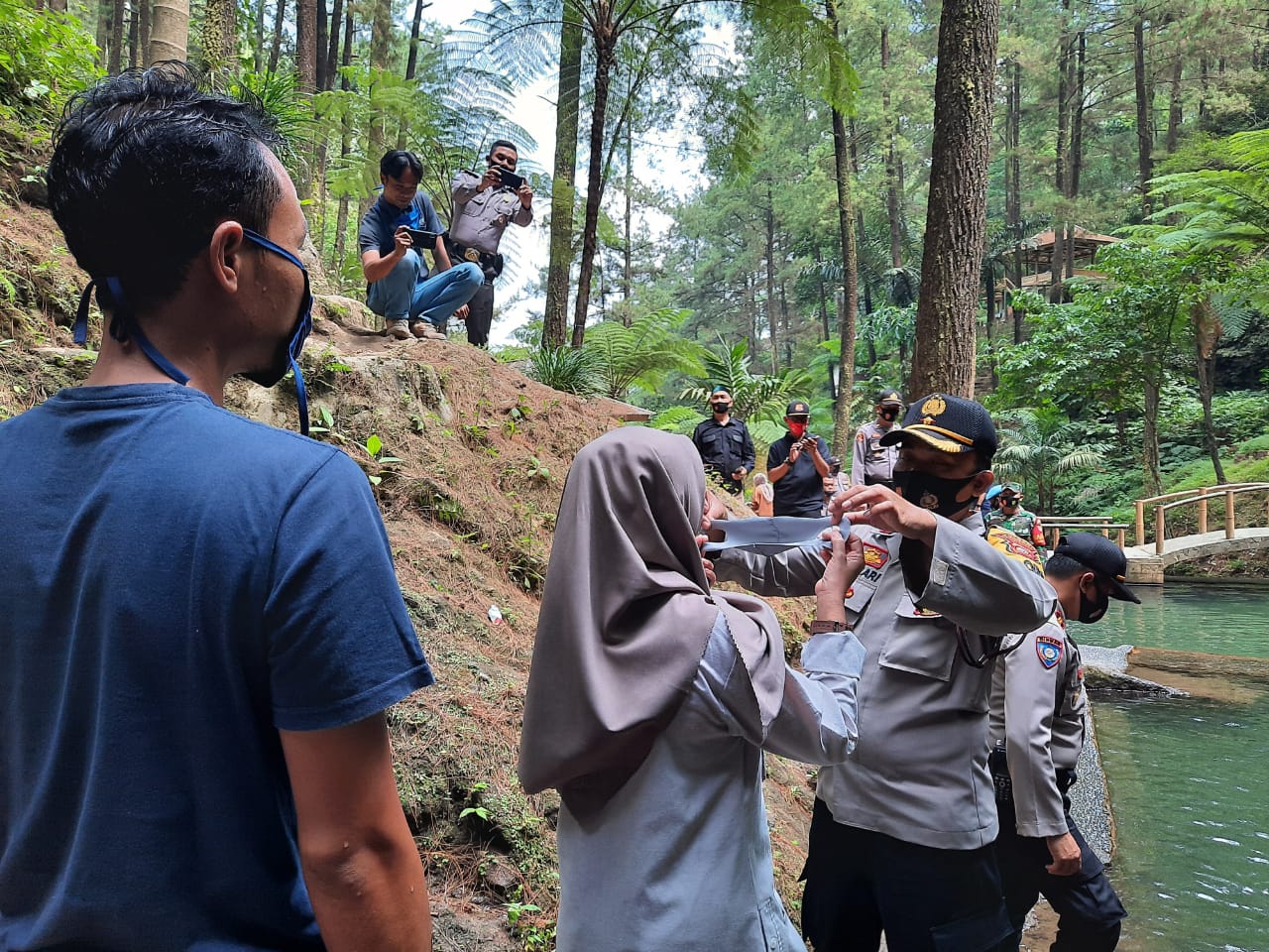 Pembagian masker dibagikan untuk pengunjung Obyek wisata diharapkan gerakan sejuta masker ini dapat mengurangi atau memutus rantai penularan Covid-19, kegiatan tersebut berdasarkan Instruksi Presiden Nomor 6 tahun 2020 tentang Peningkatan Disiplin dan Penegakan Hukum Protokol Kesehatan dalam Pencegahan dan Pengendalian COVID-19 (Corona Virus Disease 2019). Terang Waka Polres KOMPOL Sumari.