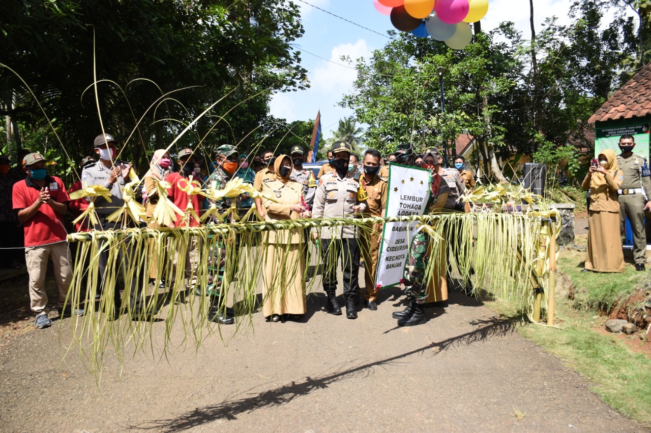 Berita Mapolres Banjar –Bertempat di dusun Babakan Desa Cibeureum Kec. Banjar Kota Banjar Walikota Banjar DR. Hj. ADE UU SUKAESIH, S.IP, M.SI., dan Kapolres Banjar AKBP MELDA YANNY, S.IK, MH. gunting pita sebagai diresmikannya Lembur Tohaga Lodaya/Kampung Tangguh Lodaya selasa (7/7/2020)