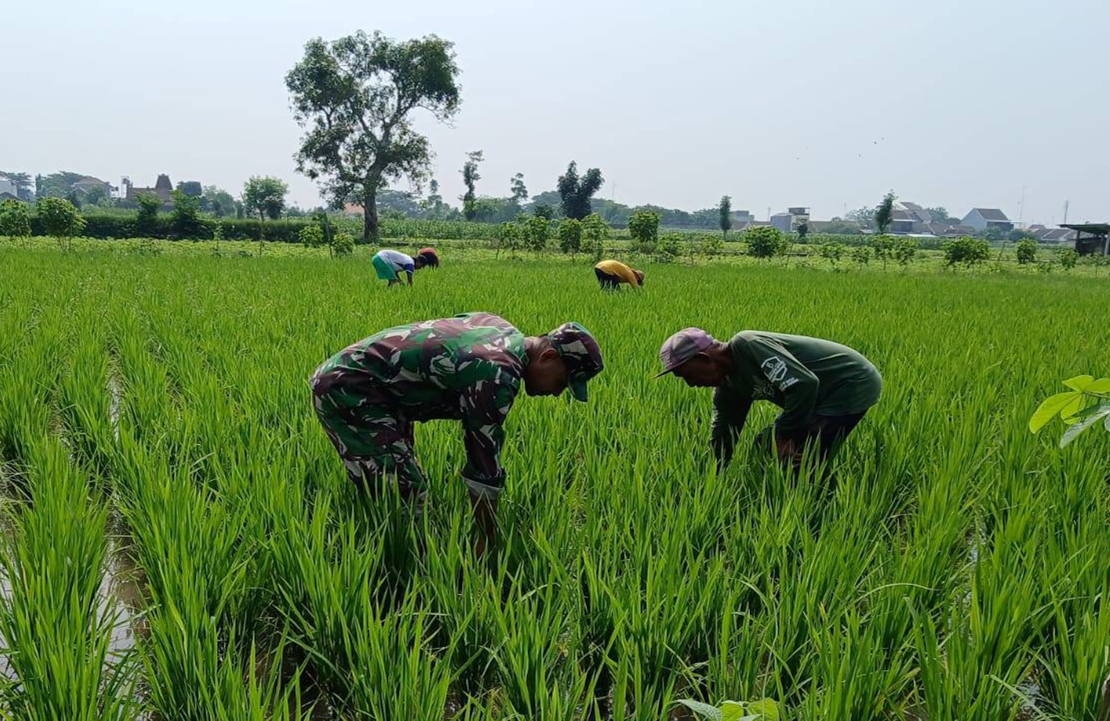 Lebih lanjut Babinsa menjelaskan, tujuan diadakan penyiangan adalah untuk membersihkan tanaman yang sakit, mengurangi persaingan penyerapan unsur hara, mempercepat pertumbuhan anakan dan mengurangi persaingan penetrasi sinar matahari.