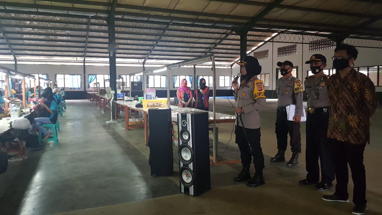 Berita MaPolres Banjar Polda Jabar – Berlokasi PT. Sung Chang Indonesia Banjar yang beralamat di Jalan Husein Kartasasmita Dusun Warungbuah Kel. Neglasari Kec. Banjar Kota Banjar, Kapolres Banjar AKBP Melda Yanny, S.I.K.,M.H. beserta Kasat Binmas, Kapolsek Banjar serta Polwan Polres Banjar, dan Bhabinkamtibmas Kel. Neglasari, Sekmat Banjar, dan Lurah Neglasari, melaksanakan imbauan Protokol Kesehatan dan Peraturan Lalu Lintas kepada para Karyawan PT. Sung Chang. rabu (12/8/2020) Pagi.
