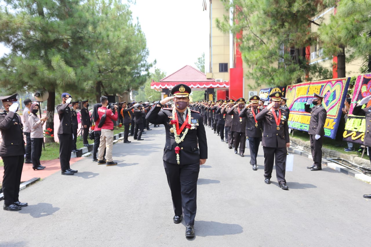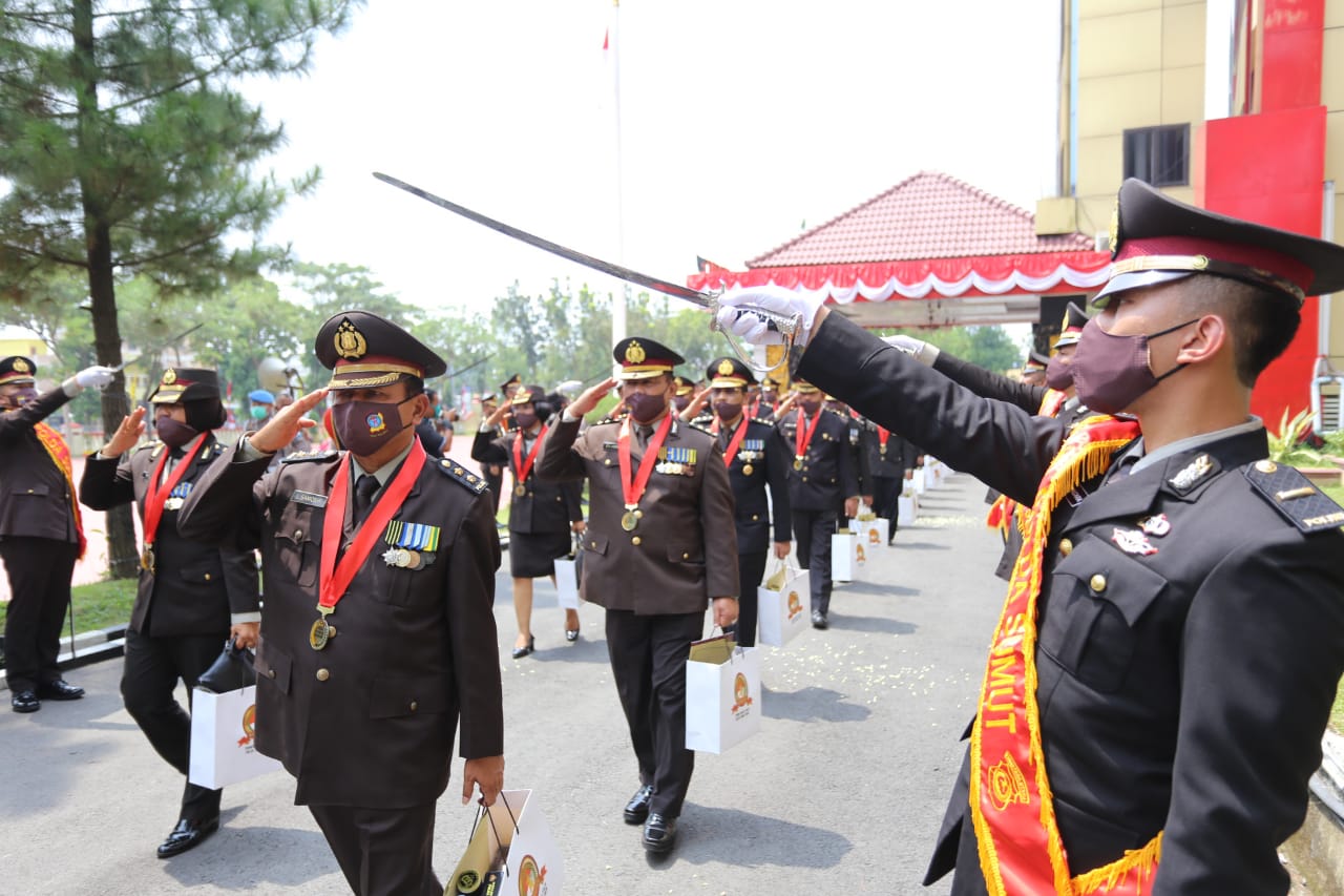Pelepasan purnawirawan Polri ini di iringi dengan pasukan pedang pora.