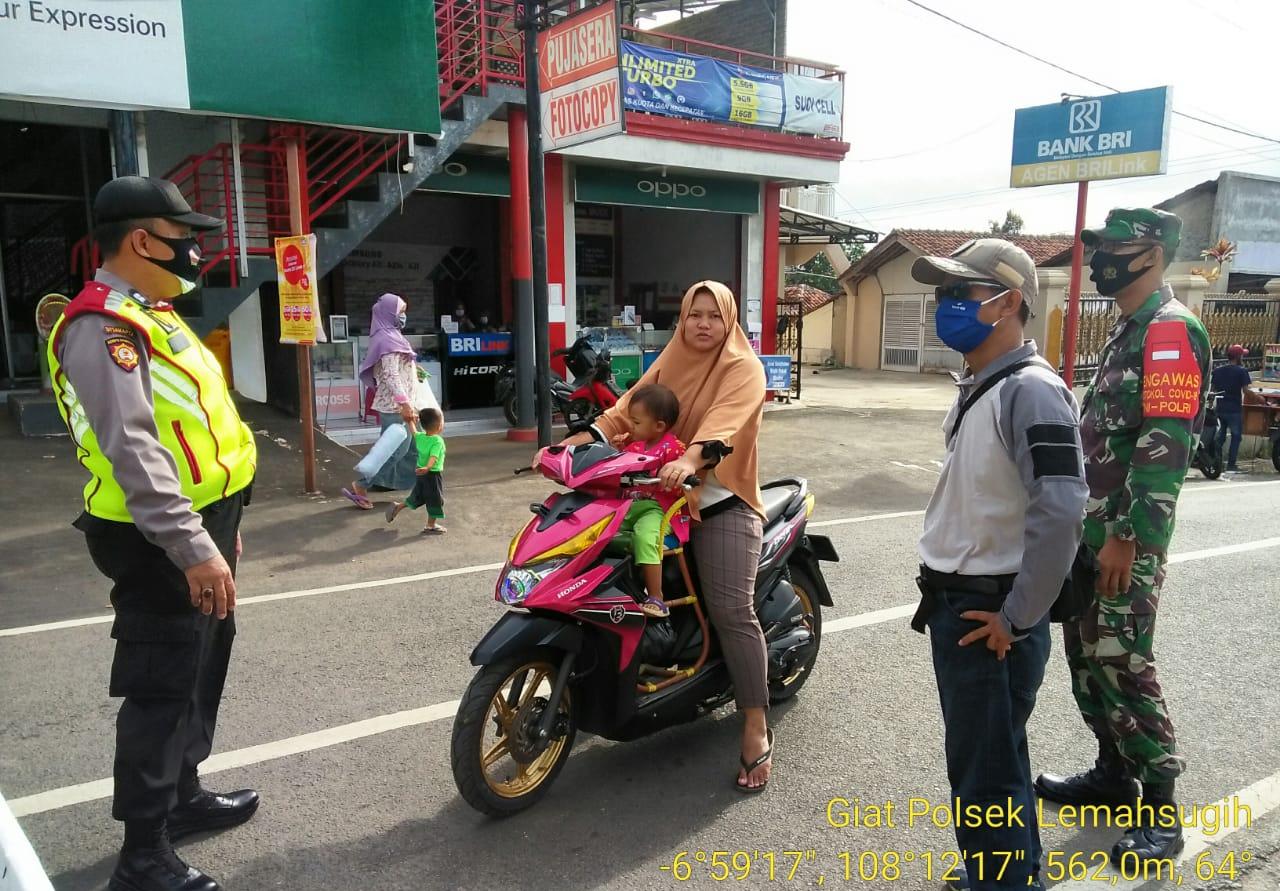Polsek Lemahsugih terus bergerak melakukan tindakan tegas bagi masyarakat yang kedapatan tidak menggunakan masker baik Pengunjung Pasar tumpah maupun pengguna jalan dengan diberikanya sangsi kepada pelanggar, yaitu sanksi sosial yang kemudian diberikan Masker gratis kepada pelanggar, sekaligus Sosialisasikan Protokol Kesehatan 3M dengan himbauan kepada masyarakat yaitu Memakai Masker, Menjaga jarak dan Mencuci Tangan agar masyarakat bisa terhindar dari wabah penyebaran Covid-19.