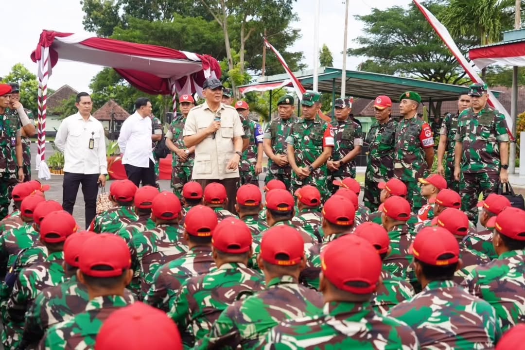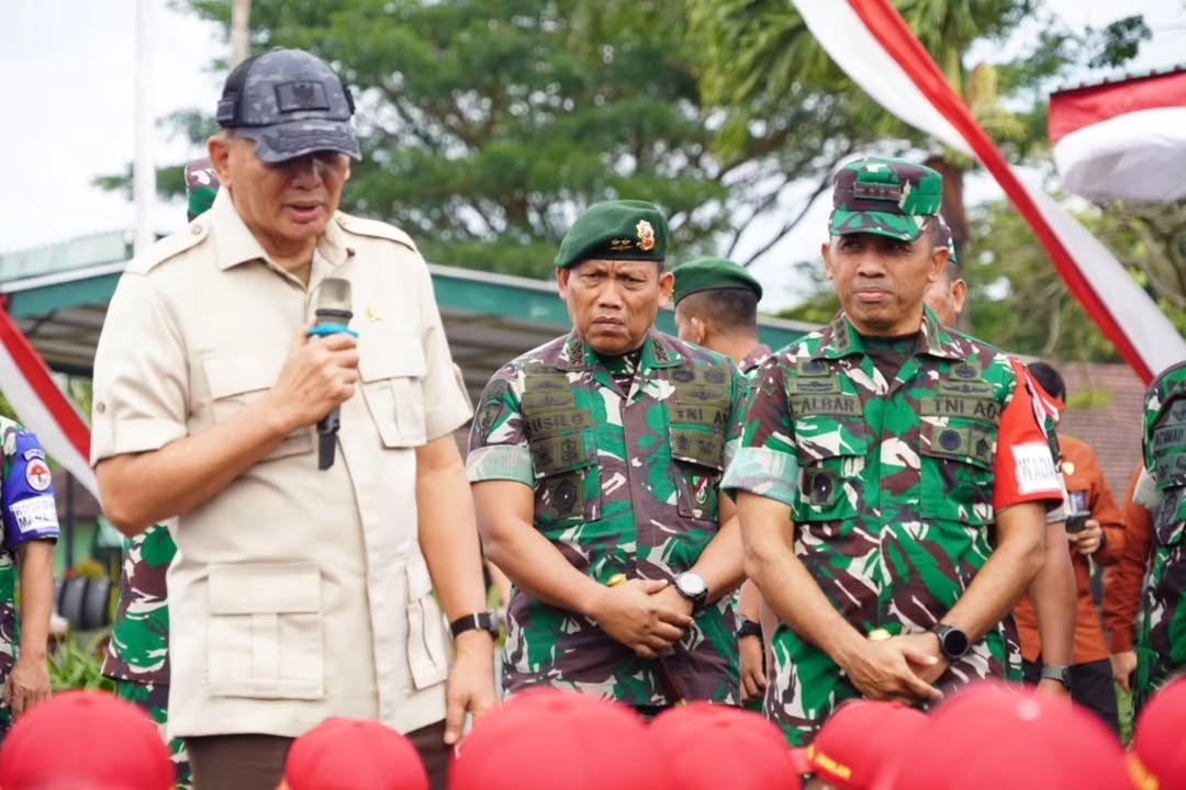 Suasana penuh semangat terpancar saat Panglima Divisi Infanteri 2 Kostrad mendampingi Menteri Pertahanan dalam kunjungan ke latihan Sarjana Penggerak Pembangunan Indonesia (SPPI) di Dodikjur Rindam V/Brawijaya, Malang. Senin (26/5/2025).