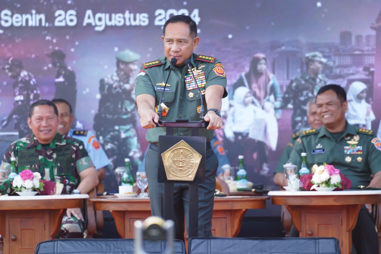 (Puspen TNI). Panglima TNI Jenderal TNI Agus Subiyanto didampingi Wakasad Letjen TNI Tandyo Budi Revita dan Pangdam Jaya Mayjen TNI Rafael Granada Baay melaksanakan acara tatap muka dengan para Komandan Resort Militer (Danrem), Komandan Distrik Militer (Dandim), Komandan Rayon Militer (Danramil) dan Bintara Pembina Desa (Babinsa) di Jajaran Kodam Jaya/Jayakarta, bertempat di Lapangan Kartika Kodam Jaya/Jayakarta Jl. Mayjen Sutoyo No.2 Cawang, Kec. Kramatjati, Jakarta Timur, Senin (26/8/2024).