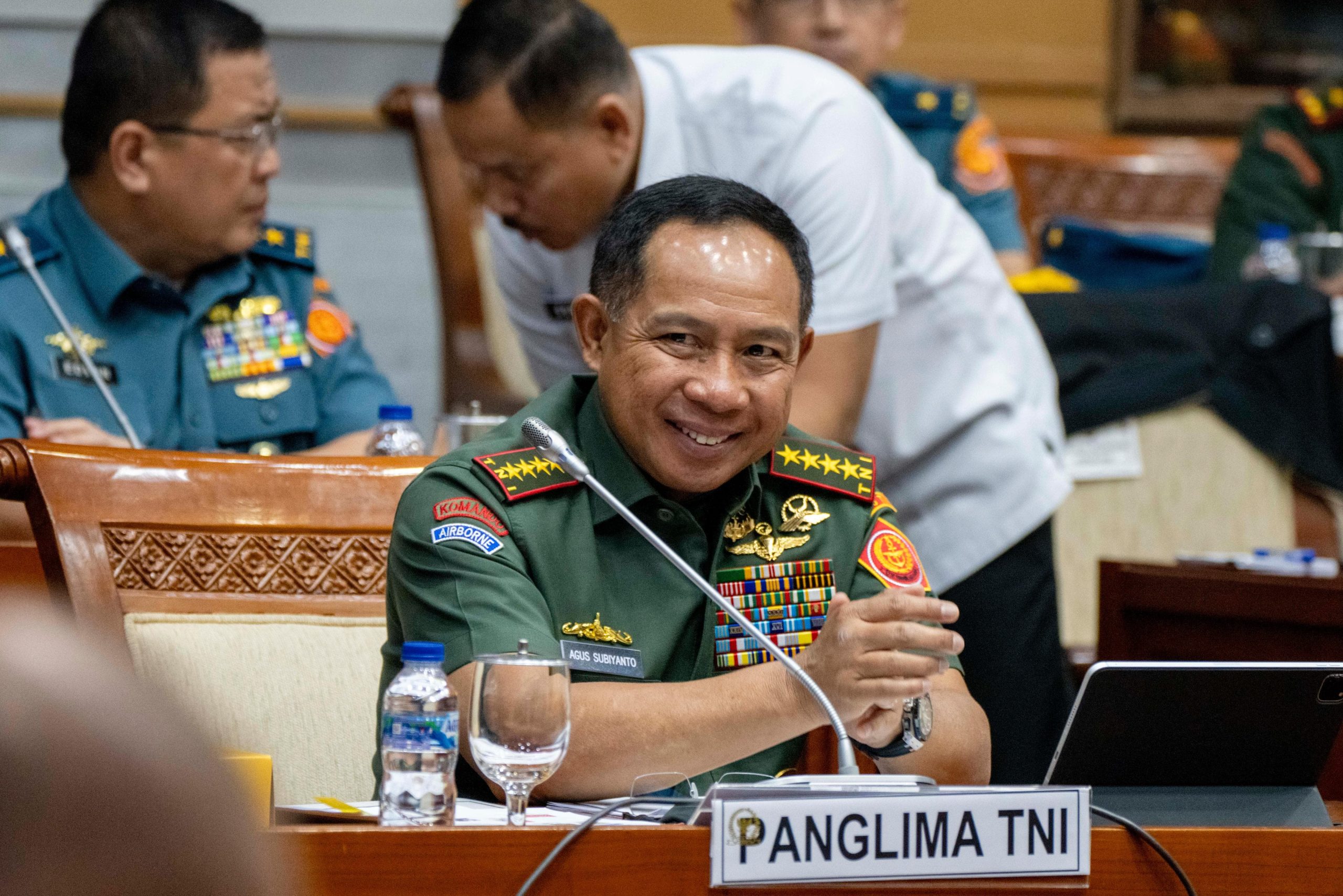 (Puspen TNI). Panglima TNI Jenderal TNI Agus Subiyanto menghadiri Rapat Kerja Komisi I DPR RI dengan pembahasan permohonan persetujuan revisi RKA-K/L UO Kemhan tentang penambahan 23 kegiatan Pinjaman Dalam Negeri (PDN) dalam DIPA tahun 2004 yang dipimpin oleh Ketua Komisi I DPR RI Meutya Hafid bertempat di Ruang Rapat Komisi I DPR RI Gedung Nusantara Paripurna, Senayan, Jakarta Pusat, Rabu (10/7/2024).