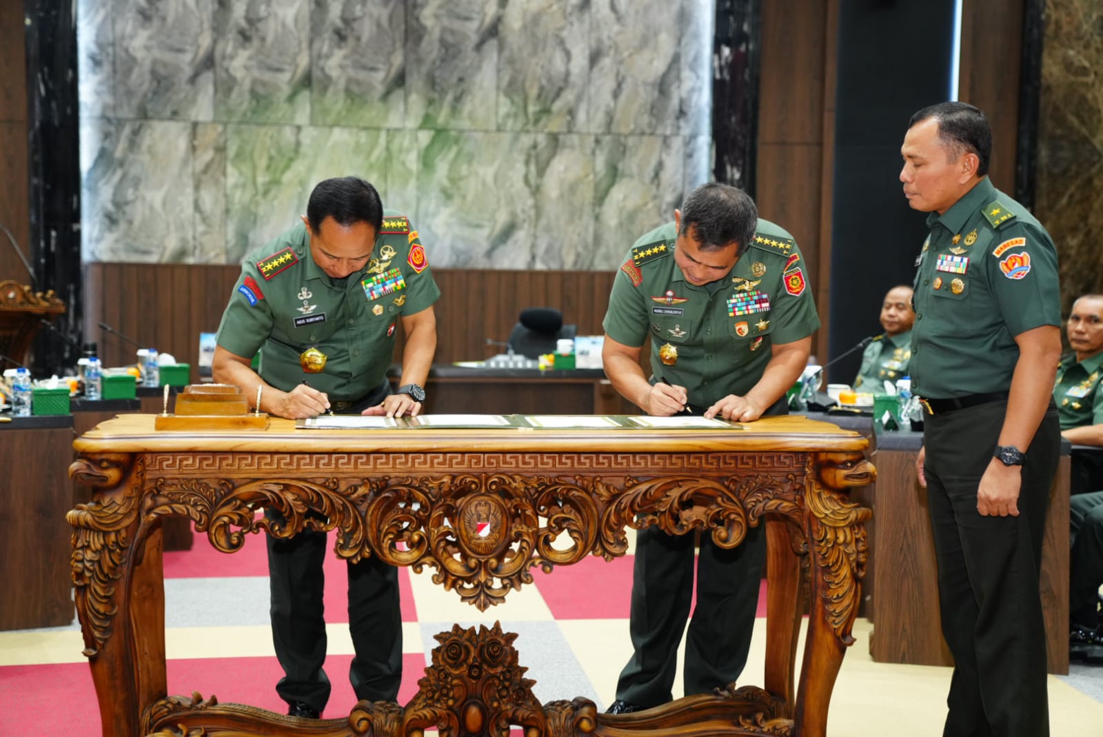 Demikian disampaikan oleh Panglima TNI Jenderal TNI Agus Subiyanto pada kegiatan penyerahan naskah risalah serah terima jabatan Kepala Staf TNI Angkatan Darat (Kasad) dan penandatangan serta penyerahan risalah Ketua Pembina Yayasan Kartika Eka Paksi, yang bertempat di Mabes AD, Jakarta, Kamis (30/11/2023).
