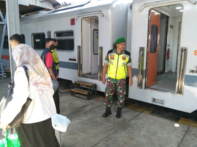 Baraknews Kodim Blitar – Anggota Koramil 0808/01 Sukorejo Kodim 0808/Blitar bersama petugas gabungan selalu bersinergi untuk melaksanakan kegiatan pengamanan dan pengecekan di stasiun kereta api Jl.Mastrip Kel/Kec.Kepanjenkidul Kota Blitar, Minggu (1/5/2023).