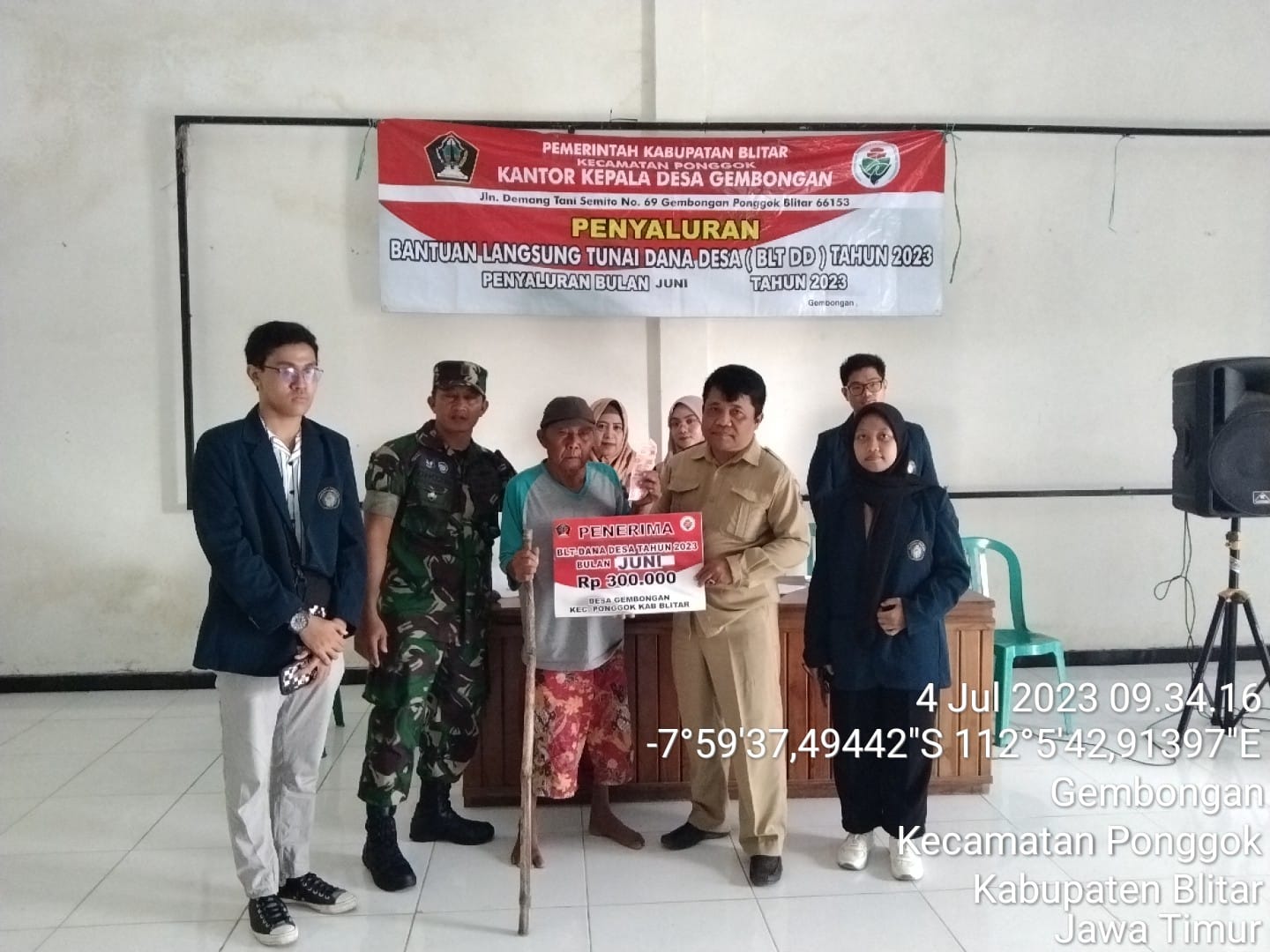 Untuk kegiatan penyaluran BLT DD kali ini dilaksanakan di Balai Desa Gembongan Kec. Ponggok Kab. Blitar, Selasa (4/7/2023).