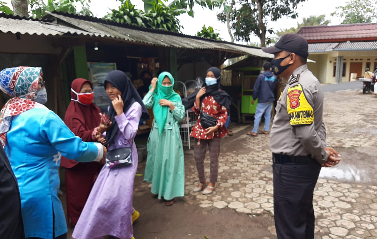Sosialisasi 3M yang di laksanakan oleh Anggota Bhabinkamtibmas Polsek Banjaran Polres Majalengka kepada warga yan berkerumun tersebut guna mencegah Penularan Virus Corona atau Covid-19 dengan selalu menerapkan 3M atau Menggunakan Masker, Mencuci Tangan dan Menajaga Jarak.