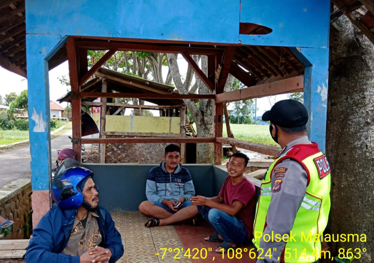 Sosialisasi 3M yang di laksanakan oleh Bhabinkamtibmas Polsek Malausma Polres Majalengka memberikan himbauan Pencegahan Covid-19 kepada warga yang berkerumun dengan selalu menerapkan 3M atau Menggunakan Masker, Mencuci Tangan dan Menjaga Jarak.