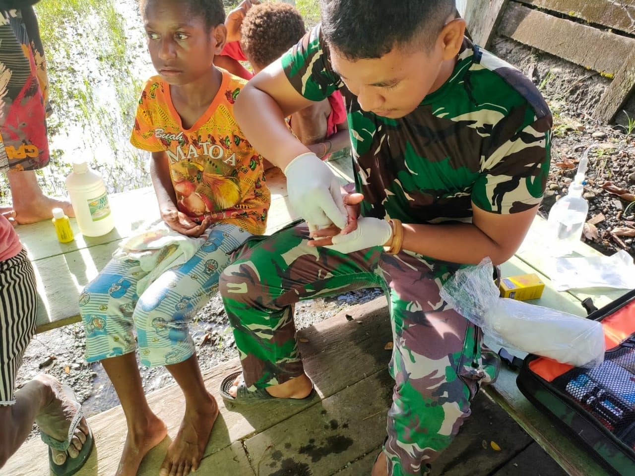 Di tempat terpisah, Danpos Waris Satgas Pamtas Yonif 126/Kala Cakti Letda Inf Wen Gusriadi mengungkapkan bahwa salah seorang masyarakat kampung Banda adik Regina (10) anak dari mama Eni dan rekannya mendatangi Pos Waris dengan maksud untuk berobat karena menurut penuturannya bahwa sudah 4 hari ini anaknya mengalami luka dan tidak kunjung sembuh disertai dengan demam.
