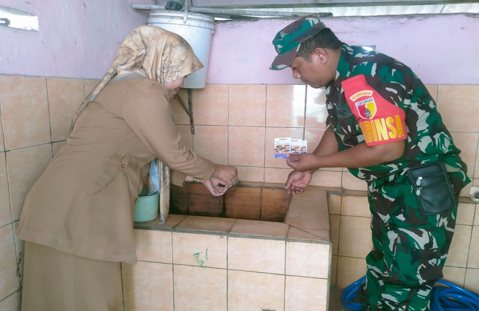 Blitar – Sebagai wujud kepedulian terhadap kesehatan warga binaannya, Serda Cahyo Eko Praptanto Babinsa Koramil 0808/08 Udanawu bersama Bidan Desa dan Kader Posyandu, pagi ini melaksanakan kegiatan Pemberantasan Sarang Nyamuk (PSN) dengan memberikan obat abate ke tempat tempat yang dianggap bersarangnya nyamuk, bertempat di RT.3 RW.4 Desa Jati Kecamatan Udanawu Kabupaten Blitar, Senin (22/7/2024).