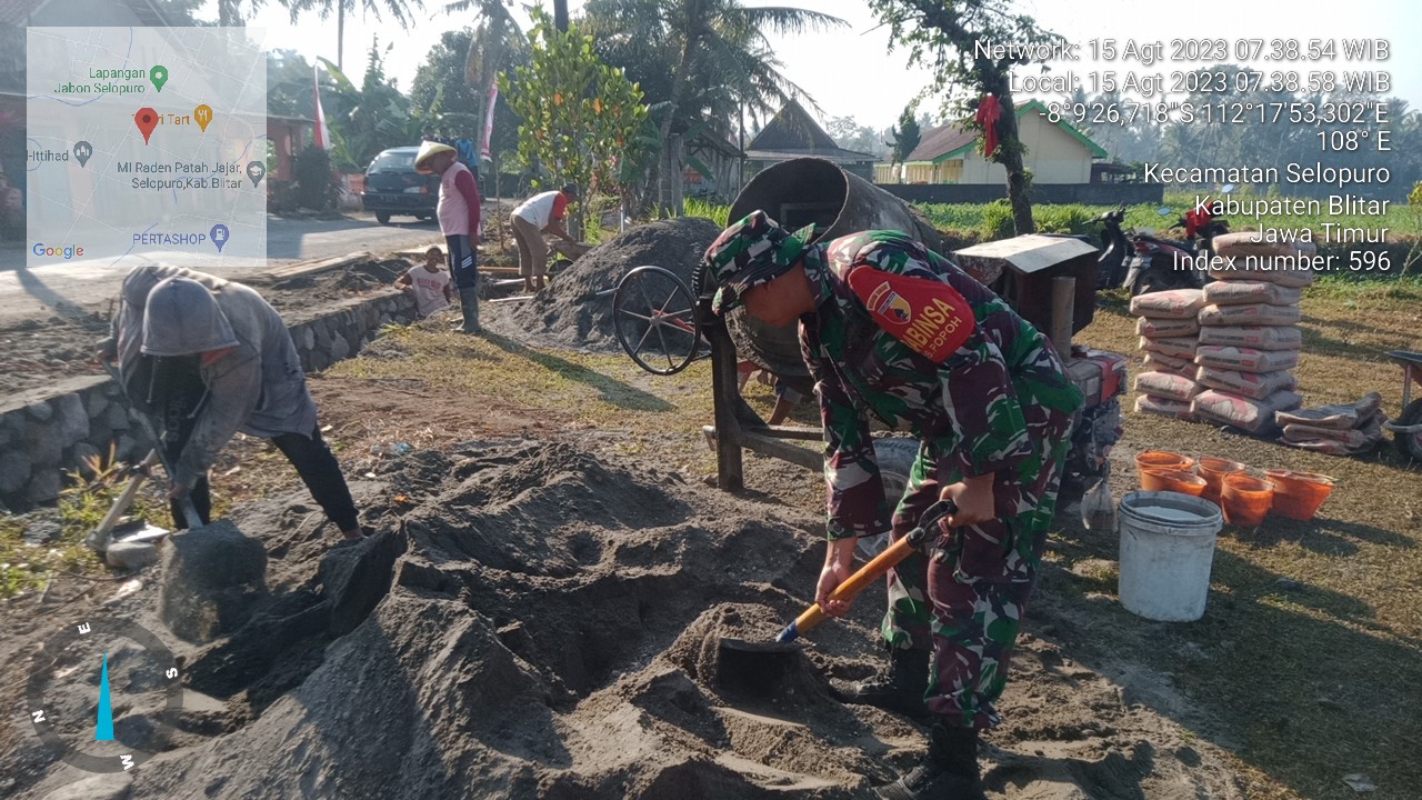 Peduli Pembangunan Di Wilayah Binaan, Babinsa Pos Selopuro Dan Warga Laksanakan Gotong Royong Bersama