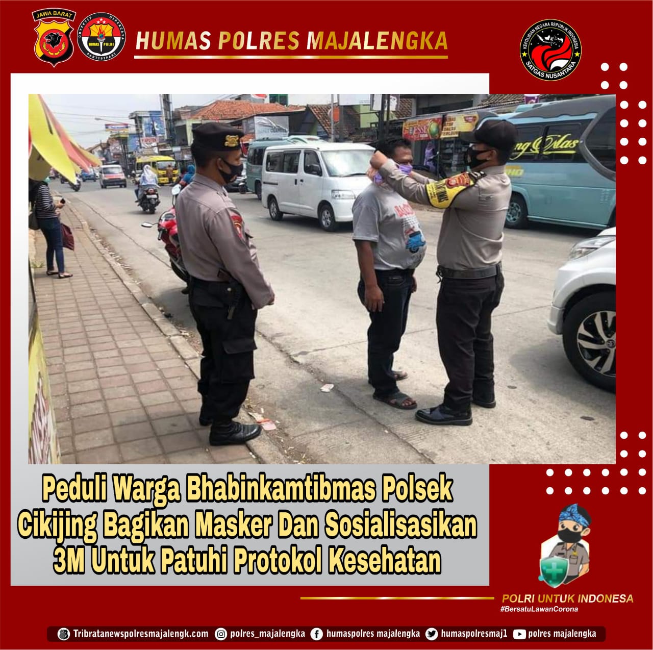 Peduli Warga Bhabinkamtibmas Polsek Cikijing Bagikan Masker Dan Sosialisasikan 3M Untuk Patuhi Protokol Kesehatan