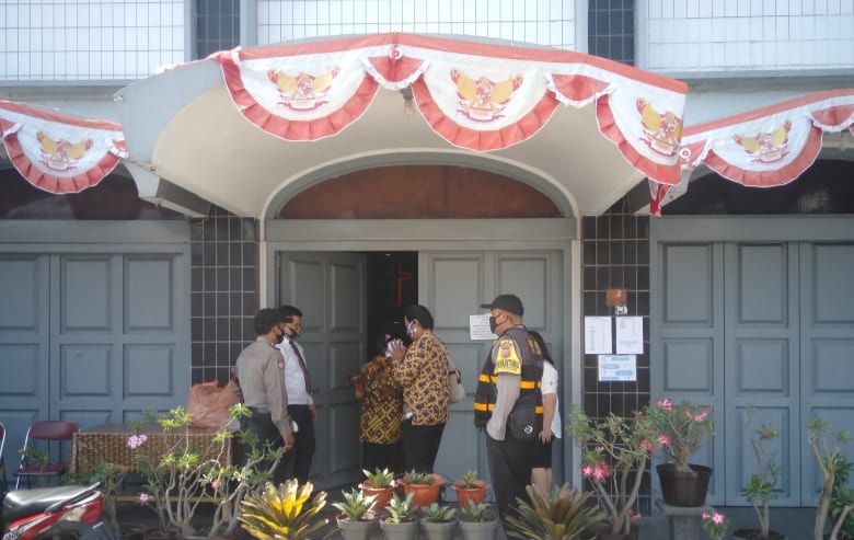 Sebelum kegiatan Kebaktian dimulai Anggota Polsek Jatiwangi Polres Majalengka melaksanakan Sterilisasi untuk memastikan keamanan gereja agar ibadah umat Kristiani dapat berjalan dengan aman dan lancar, tak lupa anggota Polsek Jatiwangi mengingatkan kepada pengurus gereja untuk menyediakan tempat cuci tangan untuk para jemaat.
