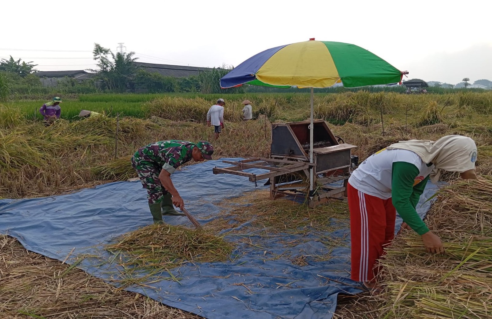 Dalam kegiatan tersebut Serka Ebit turut serta membantu Bapak Imam pemilik lahan sekaligus anggota Kelompok Tani (Poktan) Rukun Makmur. Kegiatan ini merupakan bagian dari program pendampingan ketahanan pangan yang rutin dilaksanakan oleh para Babinsa sebagai bentuk dukungan kepada para petani.