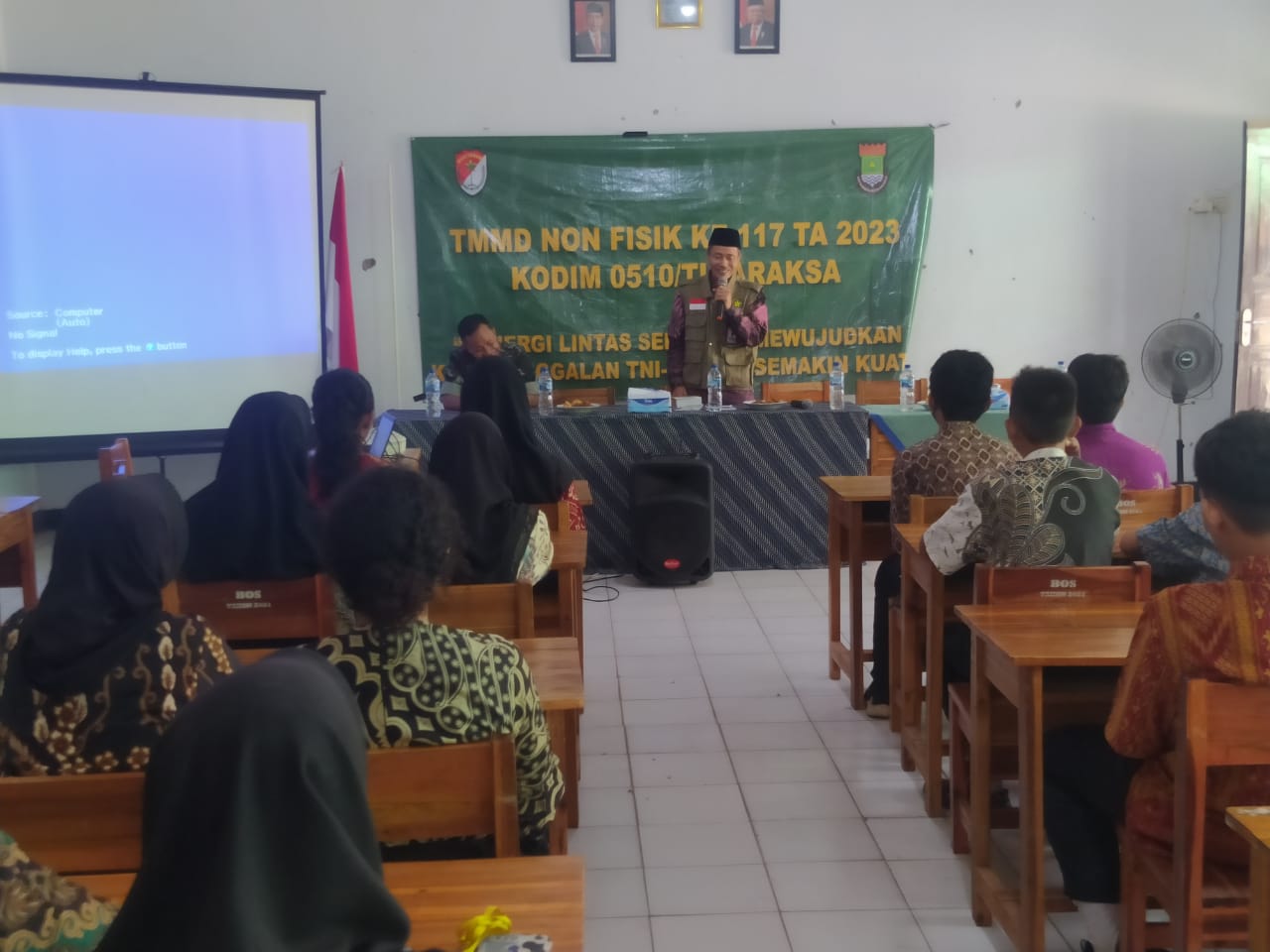 Kodam Jaya ,Tigaraksa – Ditengah kesibukan menjalankan program Fisik, sebagai satgas TMMD Reg Ke 117 Kodim 0510/Tigaraksa juga melaksanakan program Non Fisik.