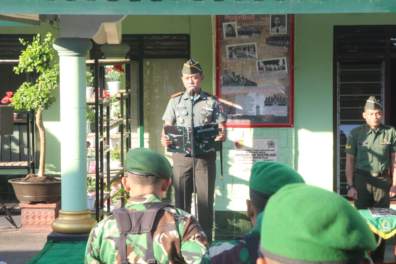 Kodim Blitar – Dandim 0808/Blitar Letkol Inf Sapto Dwi Priyono, S.E., memimpin upacara bendera 17 an bulan Juli 2023, sekaligus membacakan amanat Panglima TNI Laksamana TNI Yudo Margono, S.E., M.M., bertempat di halaman Makodim 0808, Jl. A. Yani No. 06 Kel / Kec. Kepanjenkidul Kota Blitar, Senin (17/7/2023).
