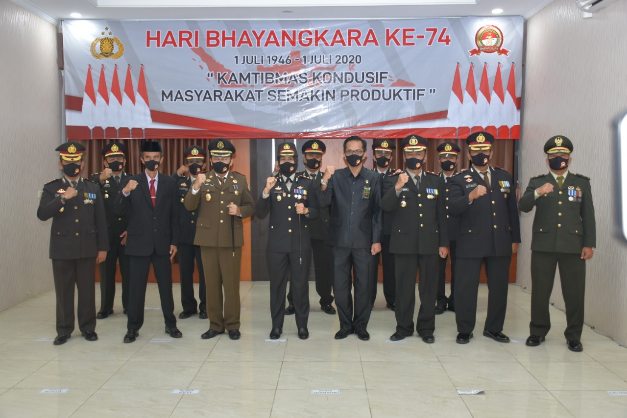 Acara peringatan Hari Bhayangkara ke-74 Tingkat Polres Banjar kemudian dilanjutkan dengan syukuran bersama para tamu undangan yang hadir. Pelaksanaan kegiatan ini tetap mengedepankan protokol kesehatan seperti menggunakan masker dan jagar jarak.