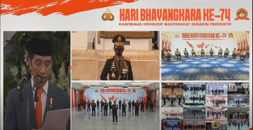 Pelaksanaan Hari Bhayangkara ke-74 secara Daring dari Istana Negara ini dipimpin langsung oleh Presiden Republik Indonesia Ir. H. Joko Widodo. Presiden juga melakukan interaksi teleconference dengan 6 Polres di berbagai wilayah di Indonesia, diantaranya.
