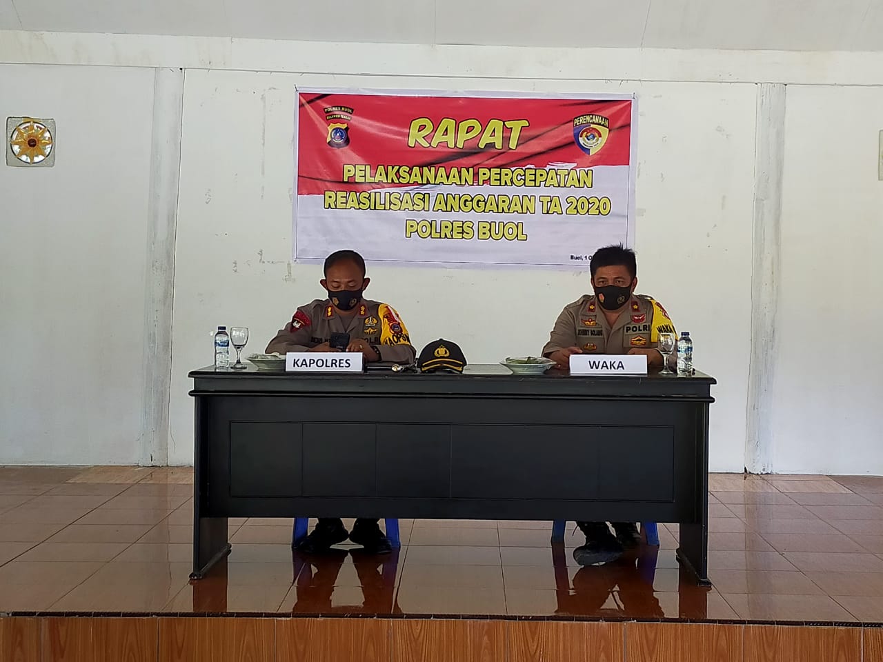 Berita Mapolres Buol (Sulteng) — Dalam rangka pelaksanaan percepatan realisasi anggaran tahun 2020, Polres Buol gelar rapat bertempat di Aula Pendopo Pakambuando Polres Buol, Kamis (01/10/2020).