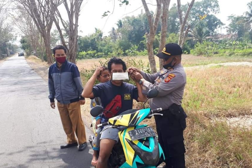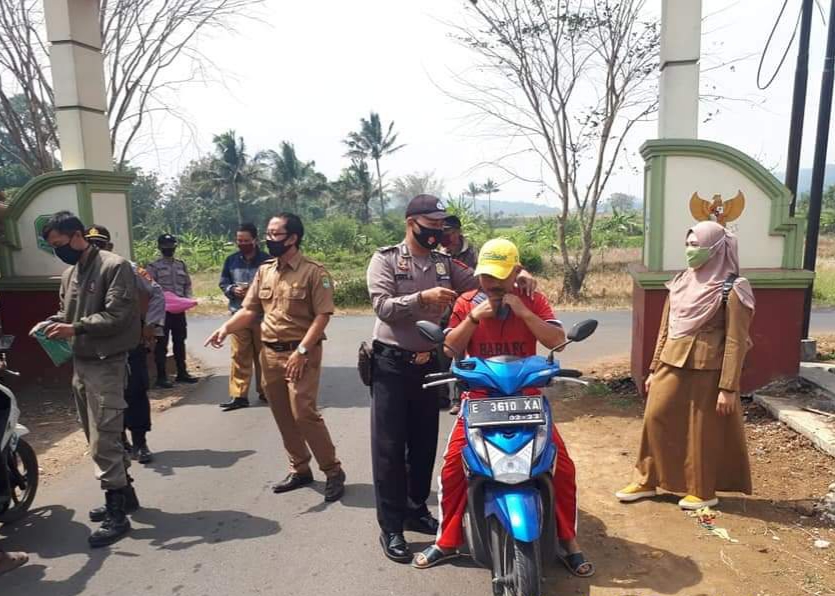 Sosialisasi 3M yang dipimpin langsung oleh Kapolsek Cingambul AKP U.Saefudin bersama anggota dan muspika kecamatan Cingambul, disertai pembagian masker kain kepada warga pengguna jalan yang melintas di depan pertigaan desa Rawa Kecamatan Cingambul Kabupaten Majalengka.