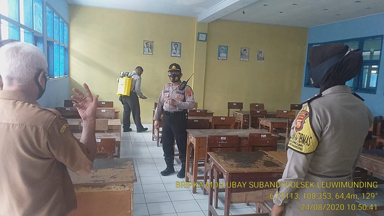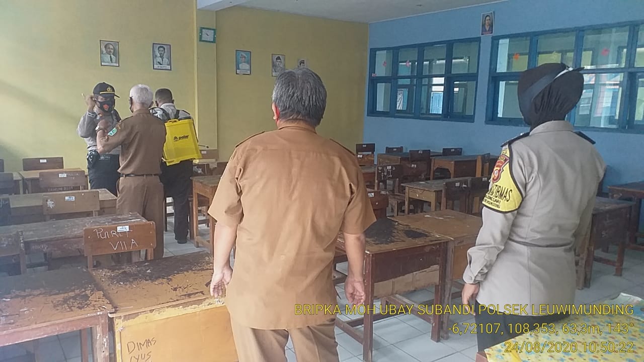 Berita MaPolres Majalengka – Jajaran Polres Majalengka terus melakukan upaya pencegahan penyebaran virus Covid-19 di Kabupaten Majalengka. Sejumlah sekolah di wilayah hukum Polsek Leuwimunding mendekati akan digunakanya gdeung sekolah untuk kegiatan belajar mengajar, dilakukan penyemprotan cairan disinfektan, Senin (24/08/2020).