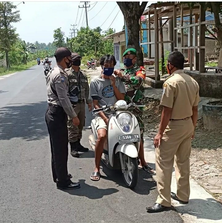 Setidaknya 14 anggota gabungan Polsek, Bhabinsa, dan ibu-ibu PKK, serta Sat Pol PP Kecamatan Pataruman, langsung ke Jalan, datangi para pengguna Jalan yang tidak menggunakan masker, dan langsung membagikan masker Gratis untuk dipakai guna pencegahan Penularan Covid-19.