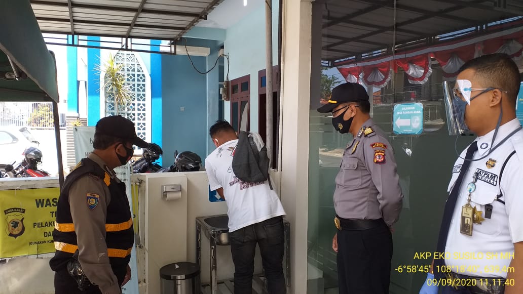 Berita Mapolres Majalengka–Mengantisipasi Penyebaran Virus Corona di lingkungan sekolah dan Swalayan melaksanakan giat Pengamanan Pendisiplinan protokol Kesehatan kepada Masyarakat dan Lingkungan Sekolah, dalam rangka Adaptasi Kebiasaan Baru di Wilayah hukum Polsek Talaga Polres Majalengka, Kamis (10/9/2020).
