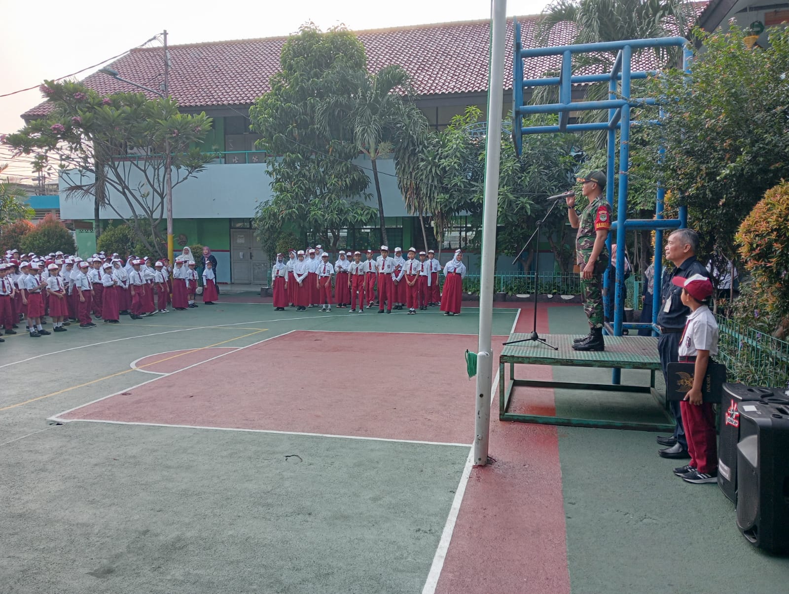 Baraknews Jakarta Pusat. (12/6) Babinsa Koramil 08/JB Kodim 0501/JP Serda Budi menjadi Inspektur Upacara Bendera Mingguan di SDN 10 Johar Baru Jl. Mardani Raya RT 12/RW 05 Kel. Johar Baru, Jakarta Pusat.