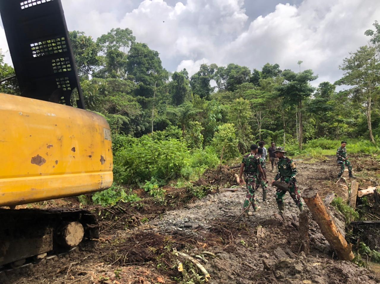 Satgas TMMD Ke-119 Kodim 1715/Yahukimo Bangun Jembatan di Jalan Seradala-Kuaserama Bersama Masyarakat Setempat