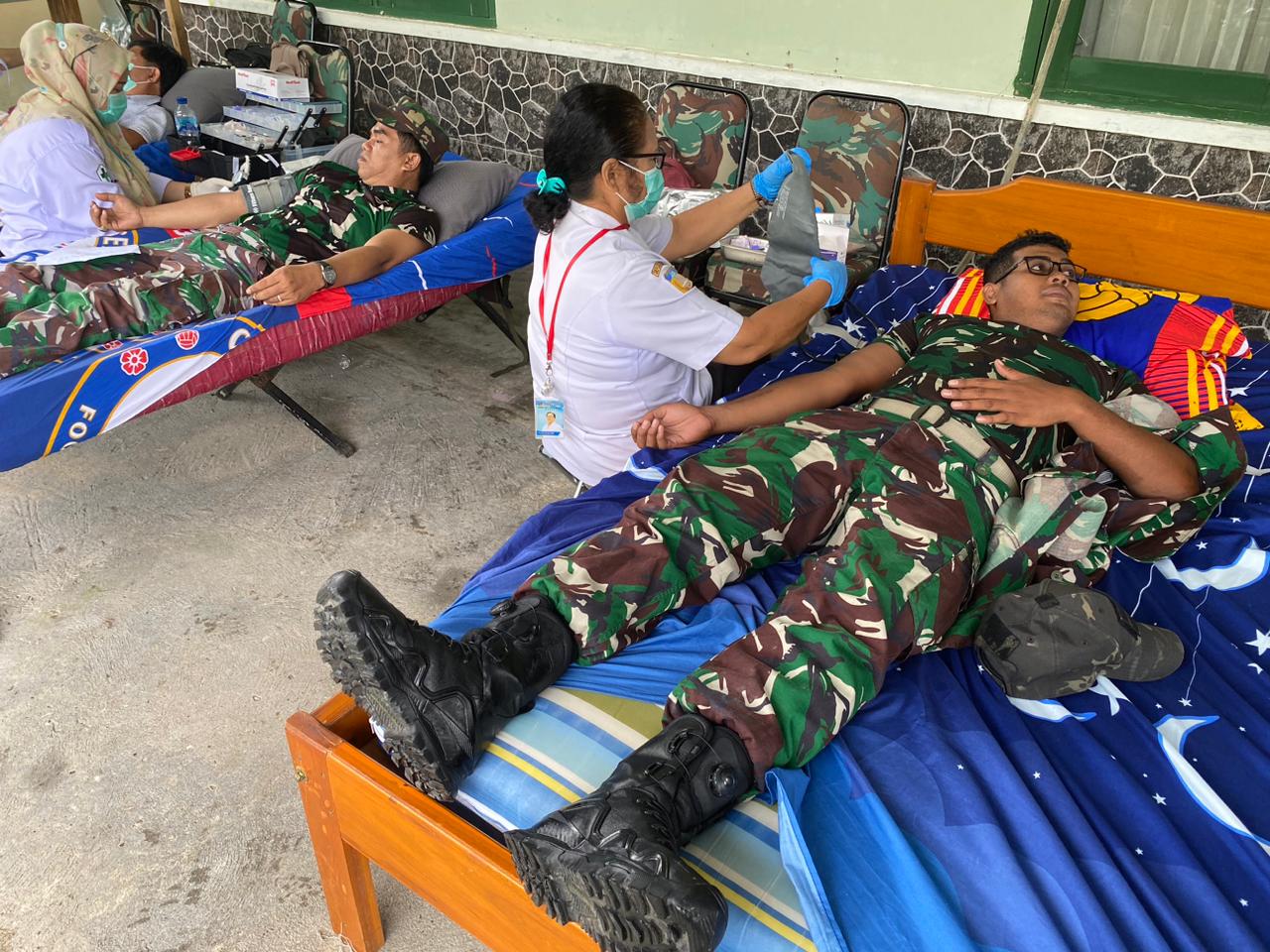 Kegiatan donor darah tersebut merupakan bagian dari program TMMD yang bertujuan untuk memberikan manfaat langsung kepada masyarakat sekitar. Para anggota Satgas TMMD dan masyarakat setempat turut serta dalam kegiatan donor darah ini dengan antusias.