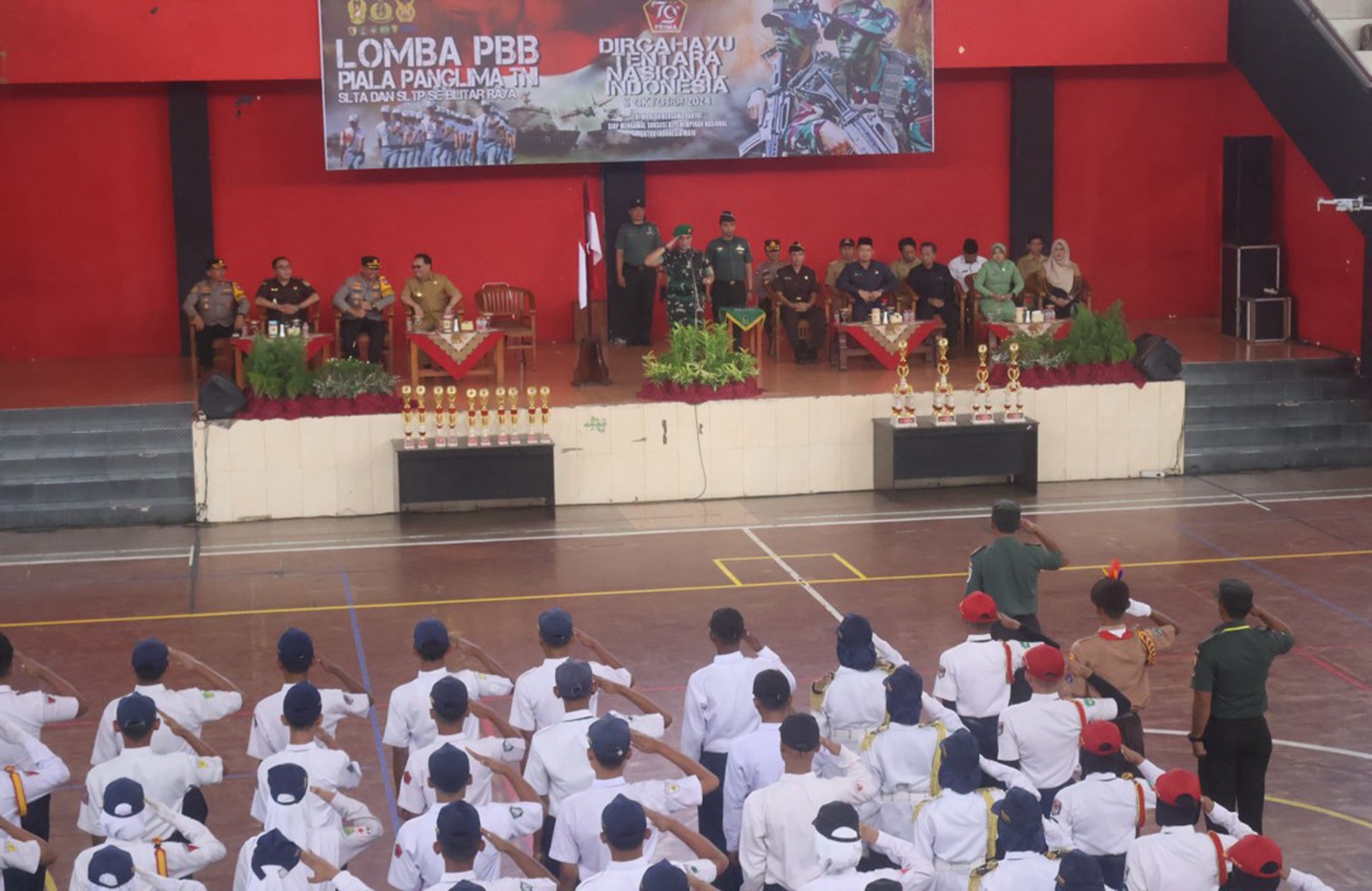 Blitar – Dalam rangka memperingati Hari Ulang Tahun Ke-79 Tentara Nasional Indonesia (HUT TNI), digelar Lomba Peraturan Baris Berbaris (PBB) Piala Panglima TNI di tingkat SLTP dan SLTA sederajat Se Blitar Raya yang berlangsung di GOR Soekarno Hatta Jl. Kalimantan Kel/Kec. Sananwetan Kota Blitar, Senin (30/09/24).