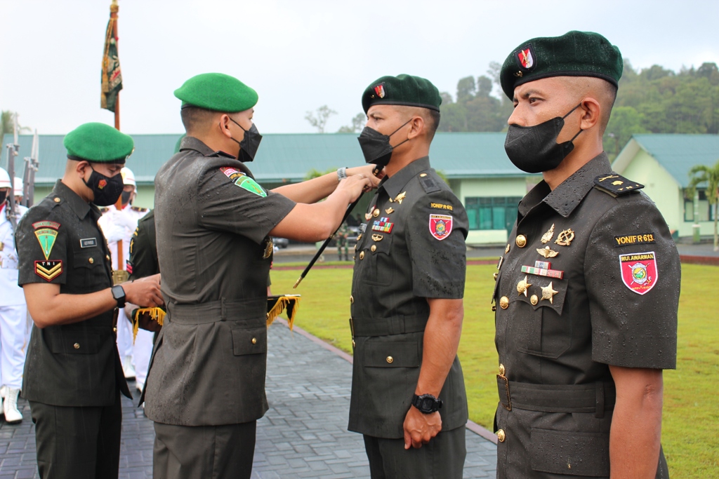 Upacara serah terima jabatan Komandan Batalyon Infanteri Raider 613/Raja Alam yang diikuti sekitar 250 personel berlangsung dengan upacara militer dan berjalan lancar dengan menerapkan protokol kesehatan.