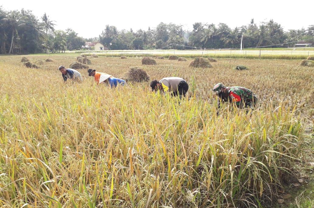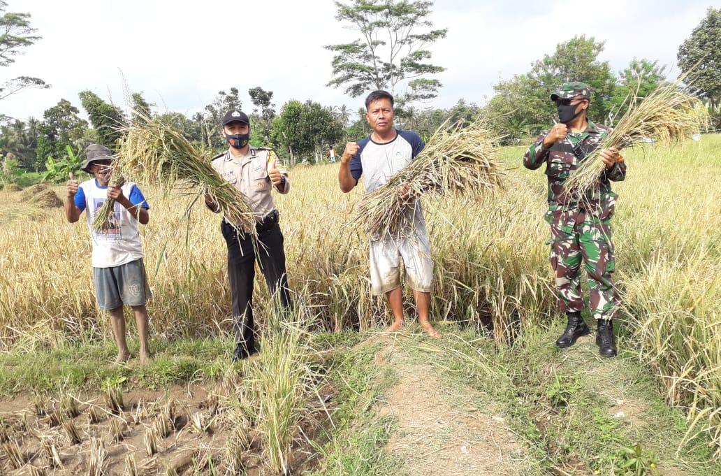Berita MaPolres Banjar Polda Jabar – Bhabinkamtibmas Polsek Langensari Bripka Dedi Wahyudi bersama Babinsa Kel. Bojongkantong dekatkan diri dengan Masyarakat dengan membantu Petani memanen padi dan menyampaikan himbauan Kamtibmas, Saat melihat warganya sedang memanen padi, Bripka Dedi Wahyudi pun langsung menyambangi warga dan membantu memanen padi rabu (5/8/2020)