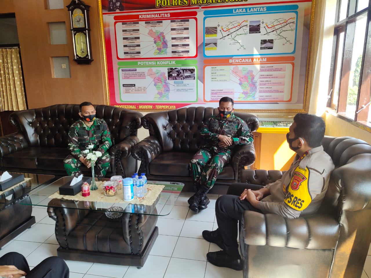 Bertempat diruang Kerja Kapolres, Kunjungan Danyon 321 bersama Wadanyon disambut sangat hangat dan akrab oleh Kapolres Majalengka AKBP Dr.Bismo Teguh Prakoso bersama Waka Polres KOMPOL Sumari serta penuh dengan nuansa kekeluargaan karena hubungan kedua pucuk pimpinan TNI dan Polri di Majalengka tersebut memang dikenal sangat dekat.
