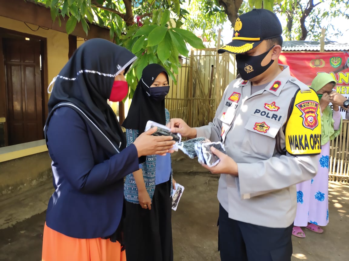 Wakapolres juga membagikan masker kepada warga untuk mendukung 3M dan melaksanakan protokol kesehatan dalam rangka memutus mata rantai penyebaran Covid-19 .(rudi)