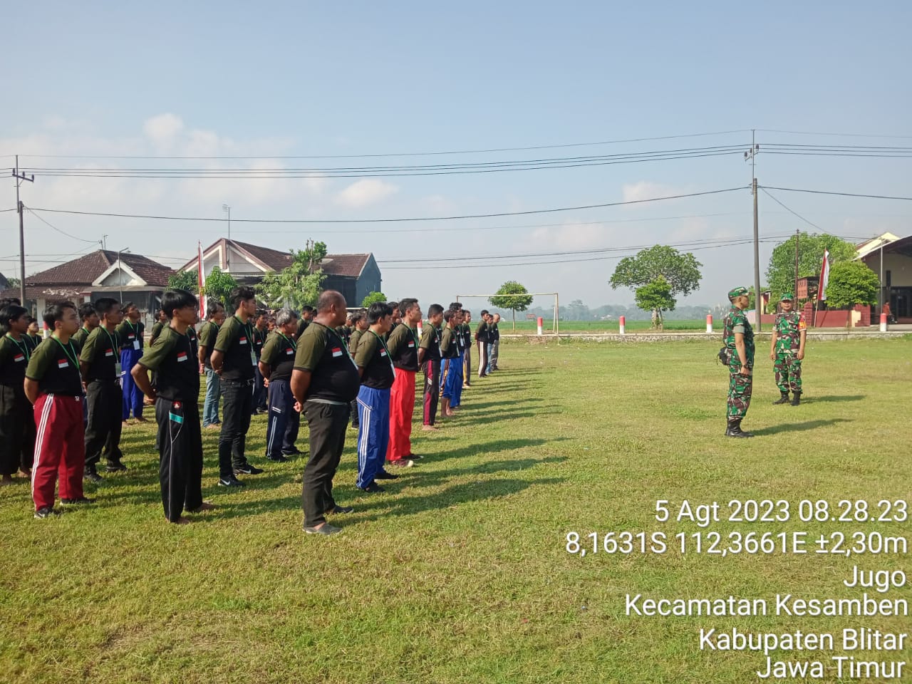 Kodim Blitar – Untuk menanamkan kedisiplinan kepada anggota Banser pada saat Diklatsar ke 52 PAC GP Ansor Banser Se Kab. Blitar TA.2023, Babinsa Koramil 0808/14 Kesamben Kodim 0808/Blitar Serka Imam Mutakalim bersama anggota yang lain, melaksanakan kegiatan memberikan pelatihan peraturan baris berbaris dan kedisiplinan, bertempat di Lapangan Desa Jugo Kec. Kesamben Kab. Blitar, Sabtu (5/8/2023).