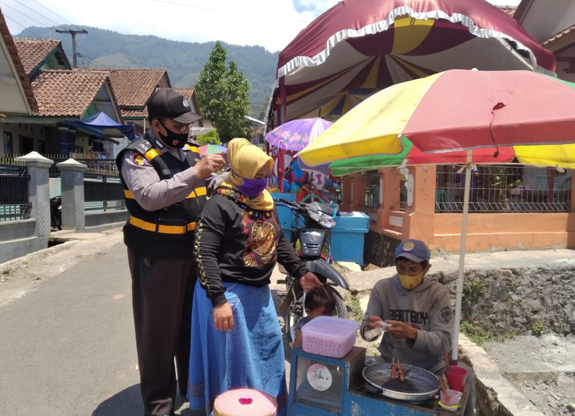Dipimpin Kanit Binmas Polsek Cingambul Polres Majalengka AIPTU Munawar beserta anggota Bhabinkamtibmas dan Aparat Desa Maniis dengan membagikan Masker Gratis Kepada Warga Dan Pengguna Jalan Desa Maniis Kecamatan Cingambul Kabupaten Majalengka sekaligus Sosialisasikan 3M atau Memakai Masker, Mencuci Tangan dan Menjaga Jarak agar masyarakat bisa terhindar dari wabah penyebaran Covid-19.